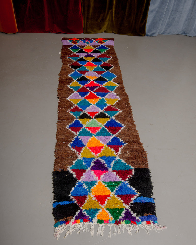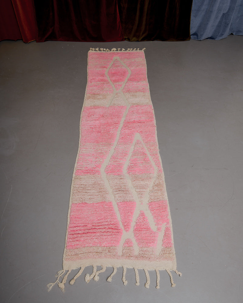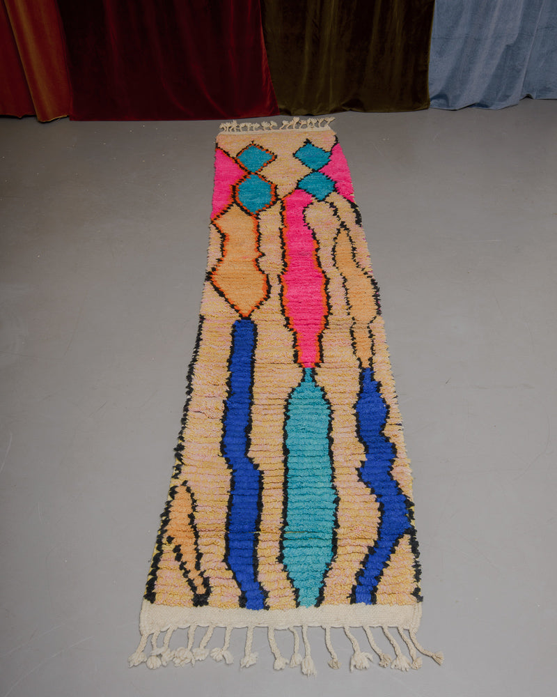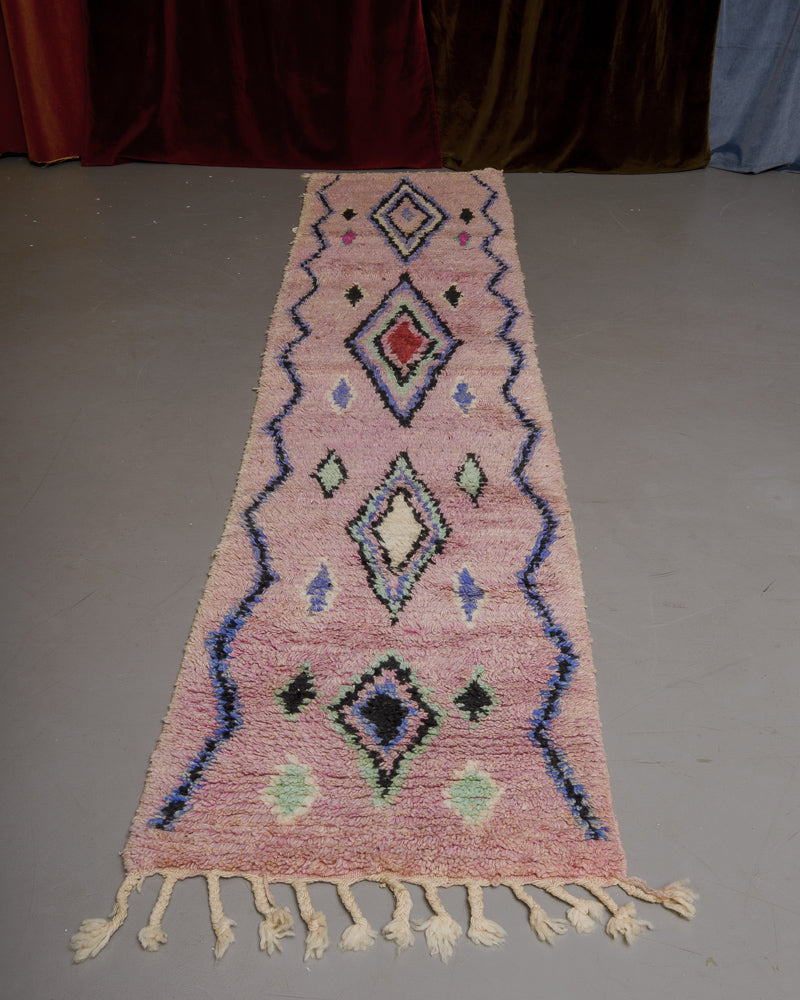 Our Berberlin runner rugs come in a variety of styles. From sturdy and colourful Boucherouite which are made of a mix of recycled cotton, cloth and wool, to our soft and fluffy wool runners in an eclectic array of designs. Whichever room you are looking to furnish; whether bathroom, hall, kitchen or even bedroom, a runner can be the perfect final addition that brings it all together.