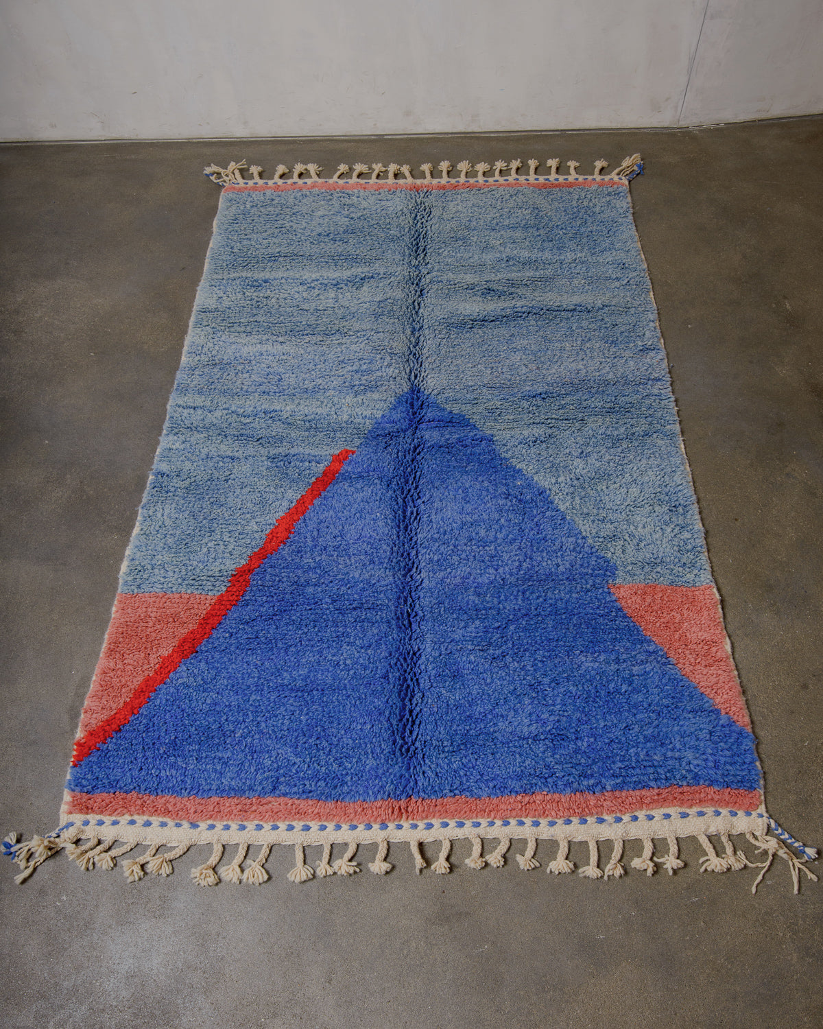 Focusing on the more unusual materials used to make these rugs, which, like traditional rugs, were produced for domestic use without any commercial intent, the Boucherouites reveal an incredible vitality and singular creativity. What often surprises is the contrast between the recycled textiles, the living colours chosen and the shabby materials used to make it. In fact, a gem of Berber art, the Boucherouite carpet is distinguished not only by its authenticity and esthetics, but also by the sincerity that emanates from it.